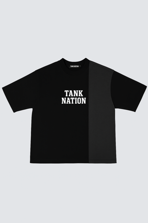 The Split Core Tee defines the Tank Nation aesthetic — bold and clean. Crafted from a premium 89.4% polyester / 10.6% spandex blend, it delivers a lightweight, flexible feel with a structured drape. The oversized silhouette brings that street-certified look while maintaining comfort and breathability through every move.